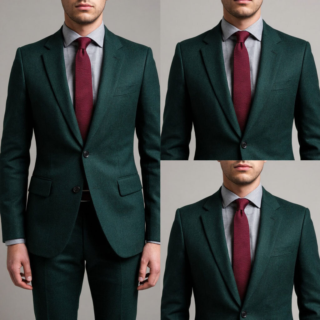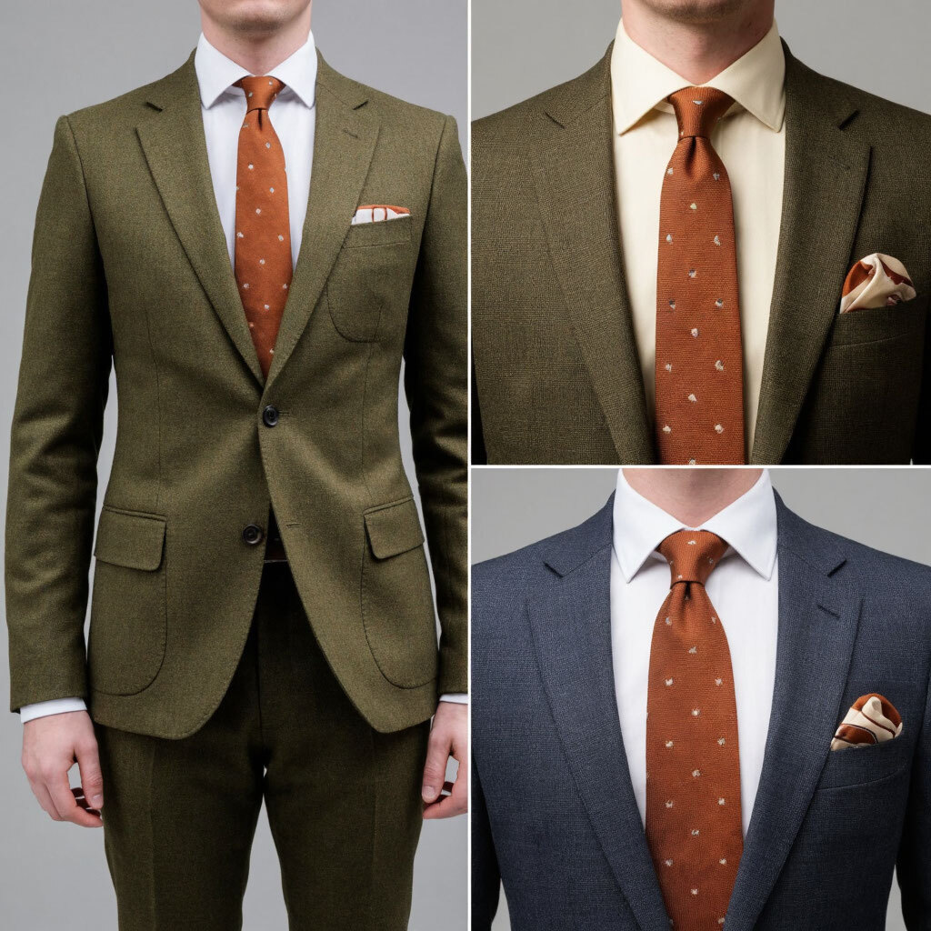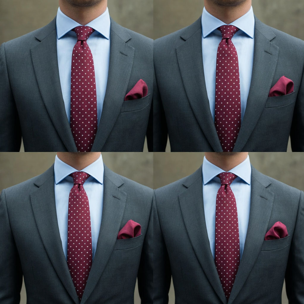 - Ткань галстука гармонирует с текстурой костюма? ✅